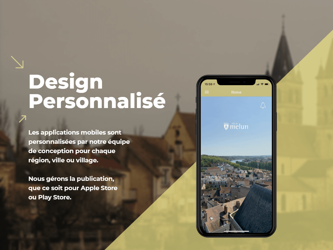 Les applications mobiles sont personnalisées par notre équipe de conception pour chaque région, ville ou village.